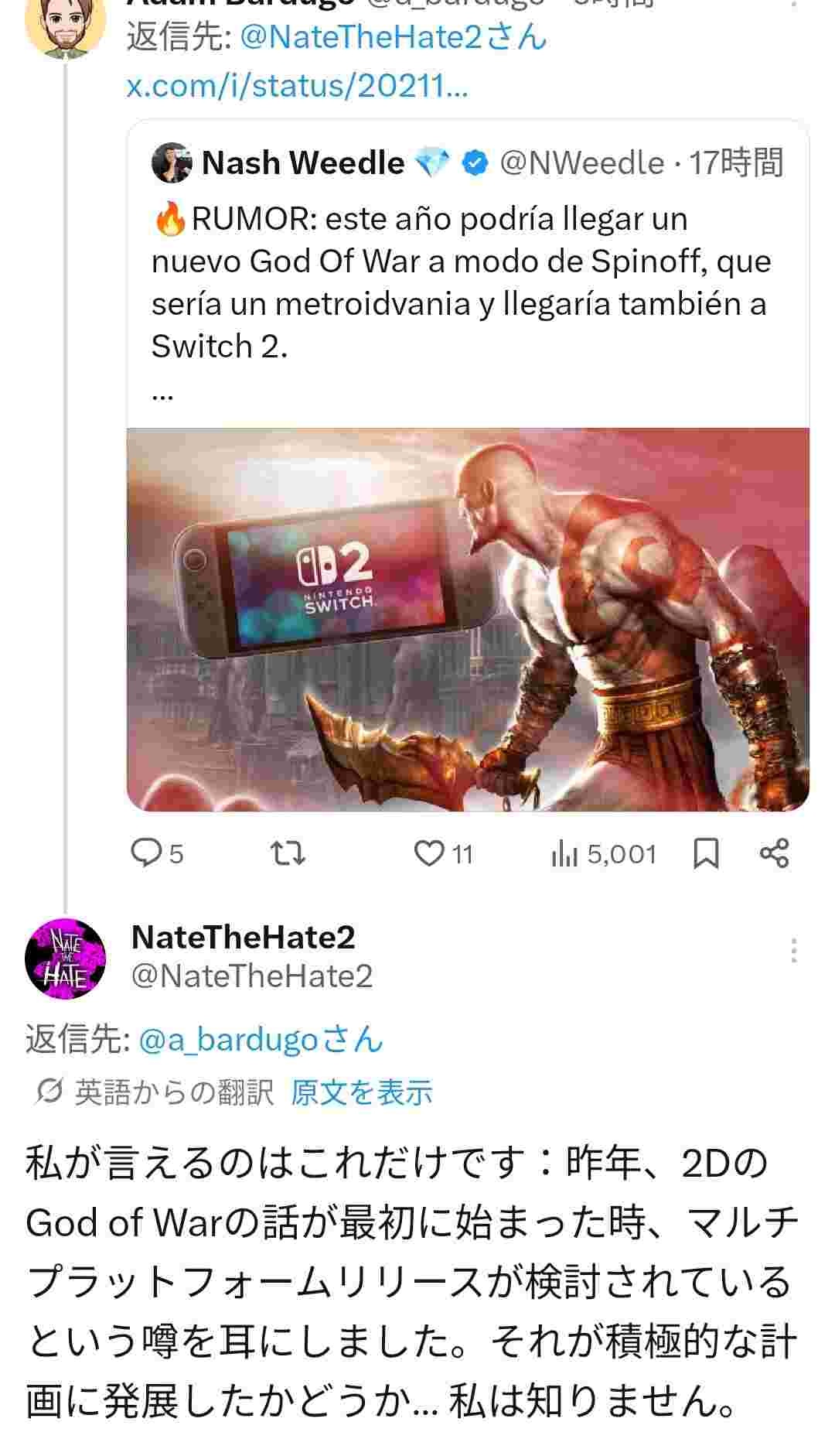 ソニーのゴッド・オブ・ウォーがSwitch2マルチと噂www