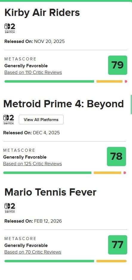 - メトロイド以外はそらそうだろってスコアだがマリカワがなぁ…