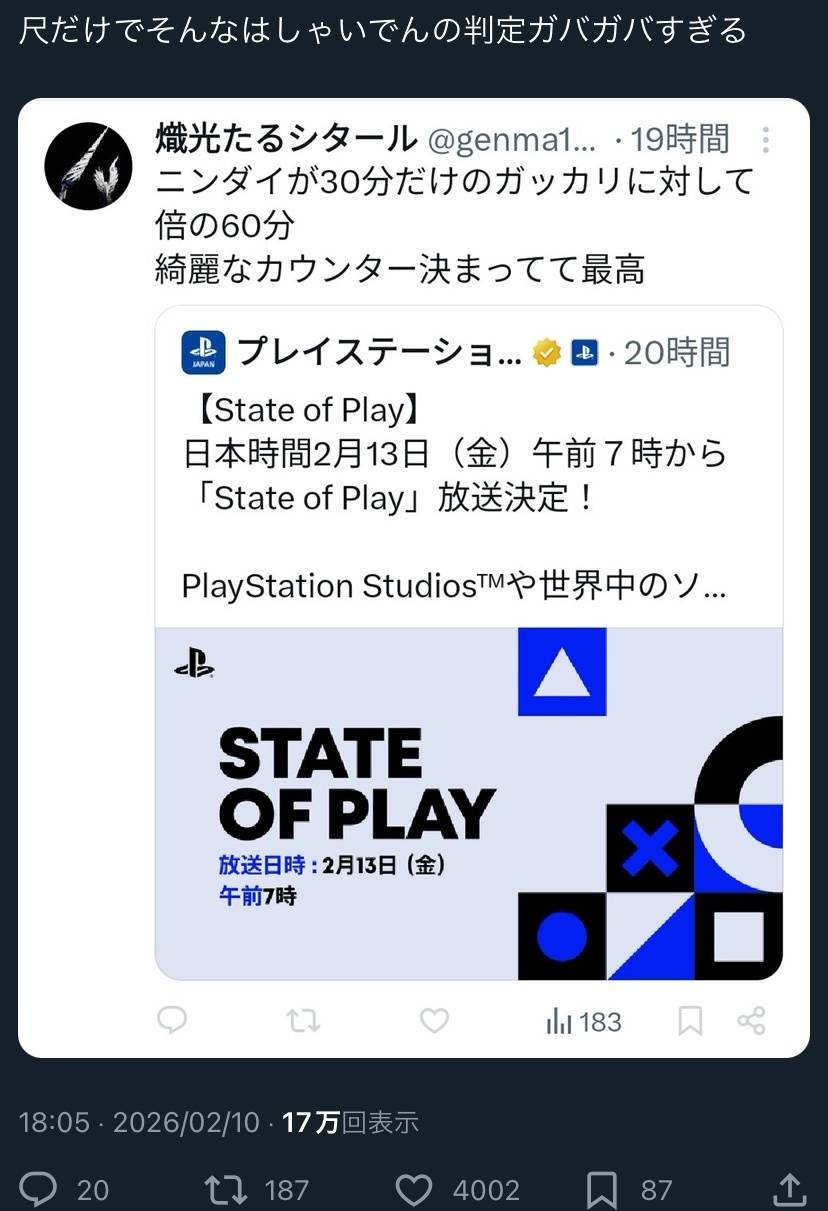 プレステは持ち上げてる層と作ってる層の感覚がほぼ同じだから - 28 : 2026/02/11(水) 18:50:15.45 ID:ZBMzbQtt0