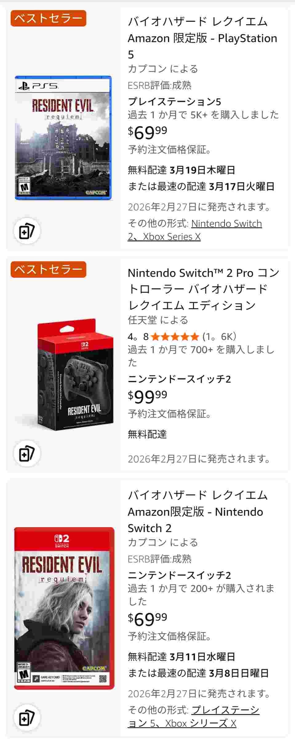 - PS5版だけどアメリカAmazonで1番売れてるゲームはバイオの予約だな