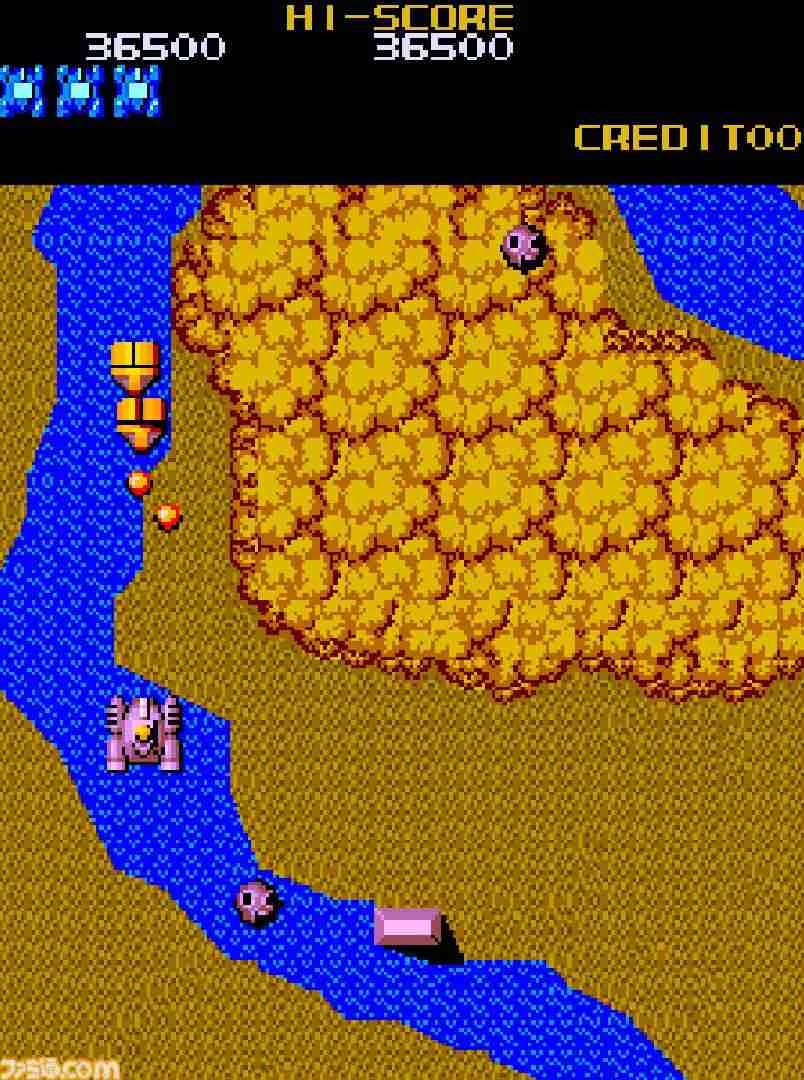 『メガゾーン』は、1984年にKONAMIから発売されたシューティングゲーム。プレイヤーは、戦車を操縦し敵基地の最奥に潜むコアの破壊を目指すこととなる。