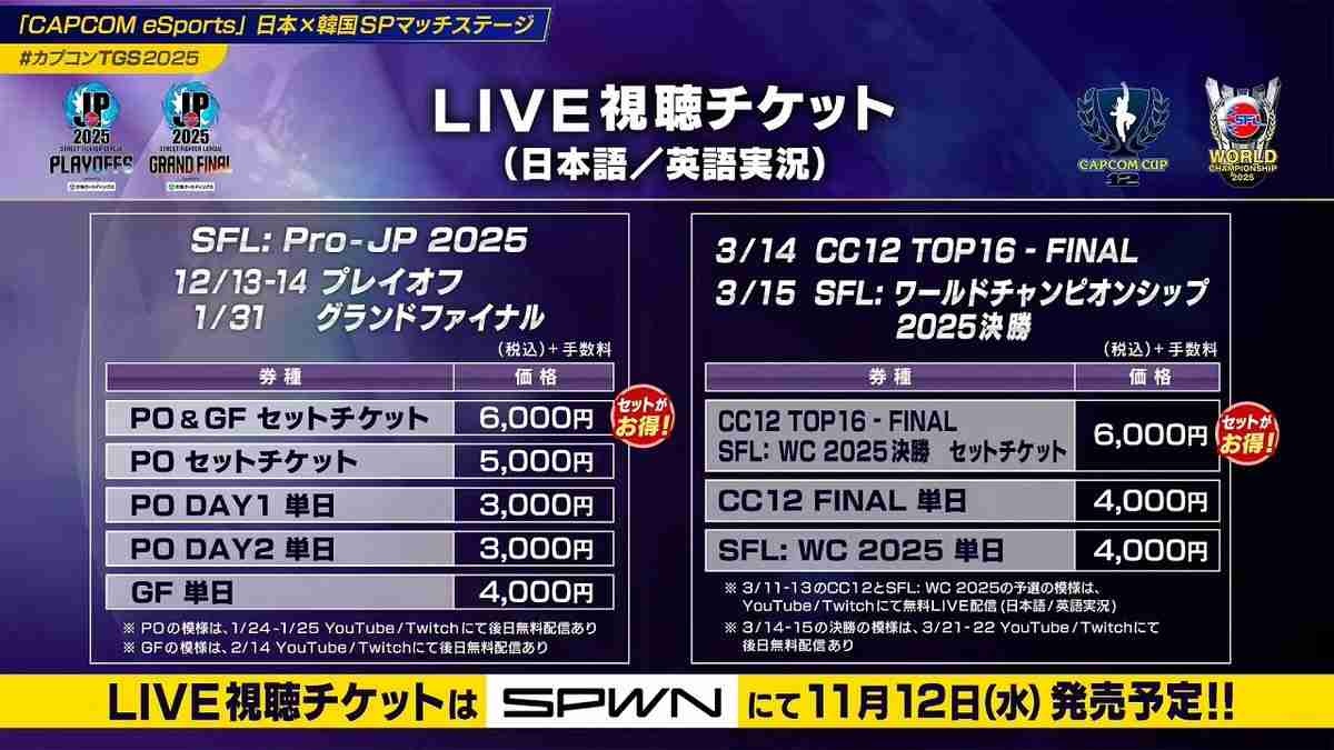 カプコンは、「ストリートファイター6」公式世界大会「CAPCOM CUP 12」と「SFL: ワールドチャンピオンシップ 2025」のライブ視聴について新情報を発表した。