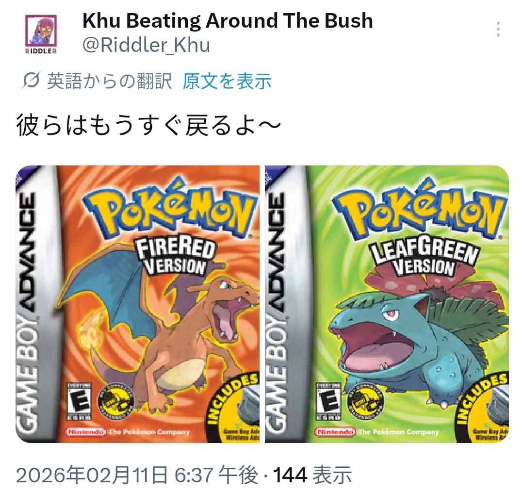 ダウンロード版オンリーでも良いけど、GB GBAのポケモンのコレクションソフトをパッケージ版でもほしい - 20 : 2026/02/11(水) 22:15:22.13 ID:e5NuiLiQ0
