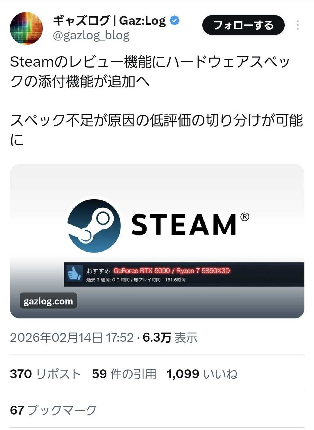 Steamのレビュー機能にハードウェアスペックの添付機能が追加へ