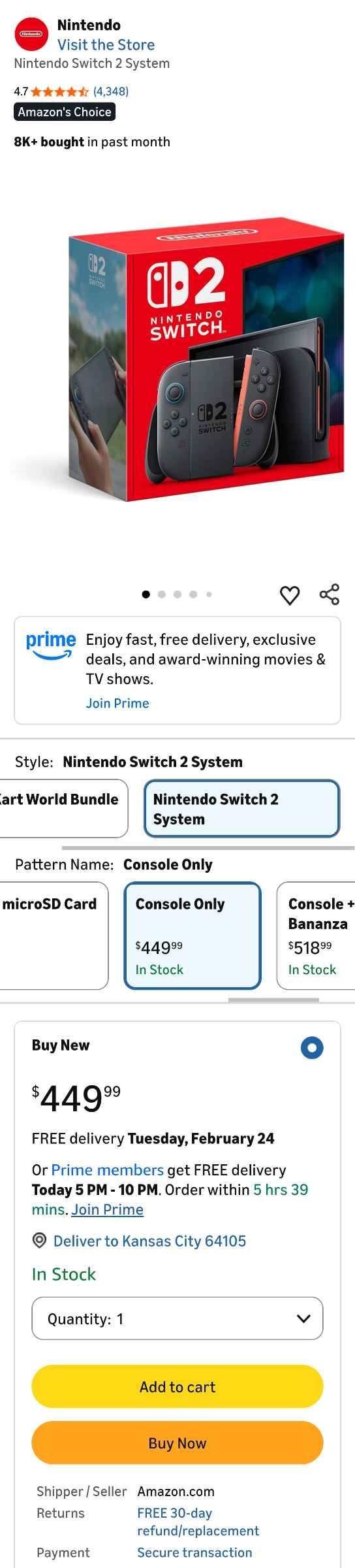 Switch2さん、米Amazonで過去1カ月の販売台数が9000台を下回ってしまう
