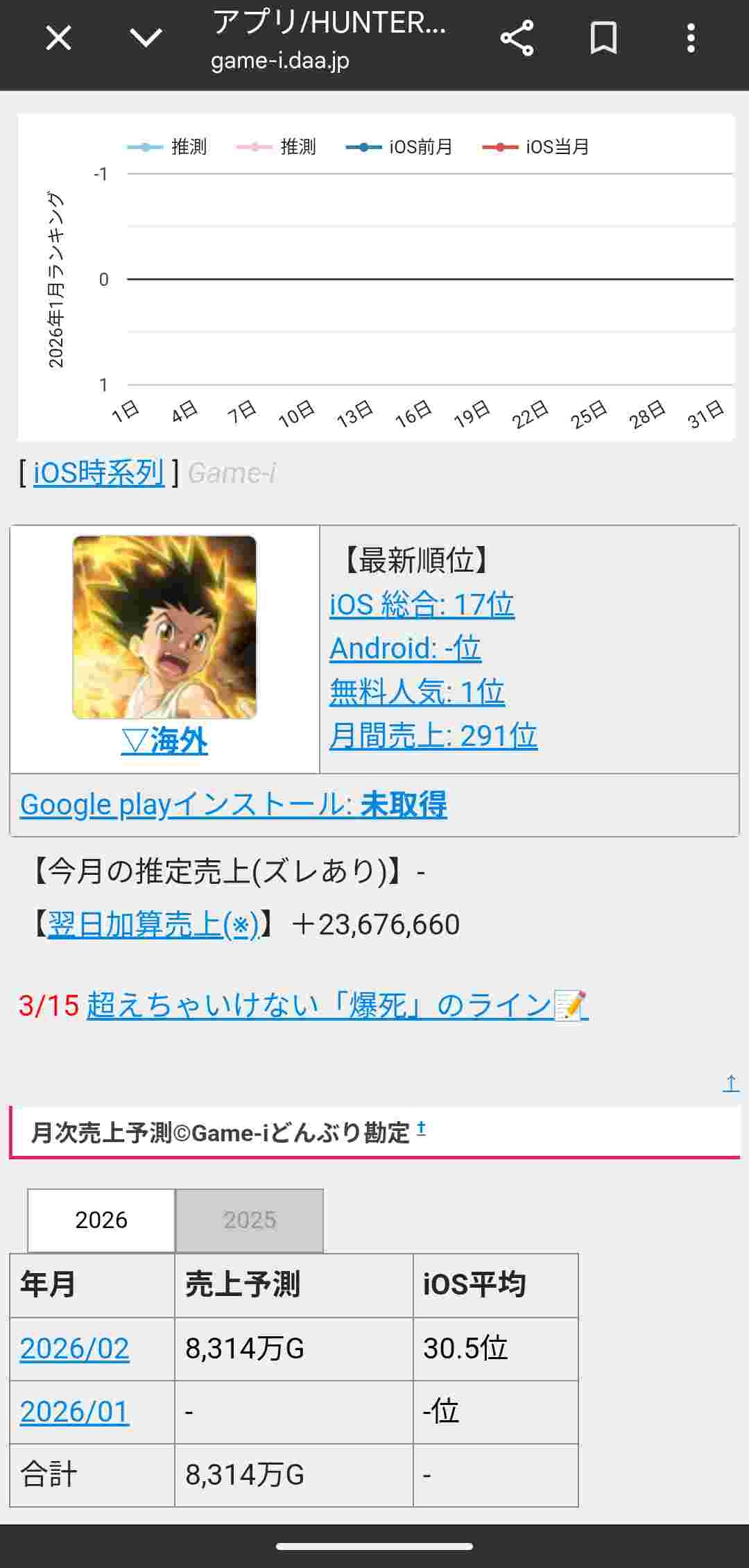 ハンターハンターのソシャゲー、初動セルラン17位www