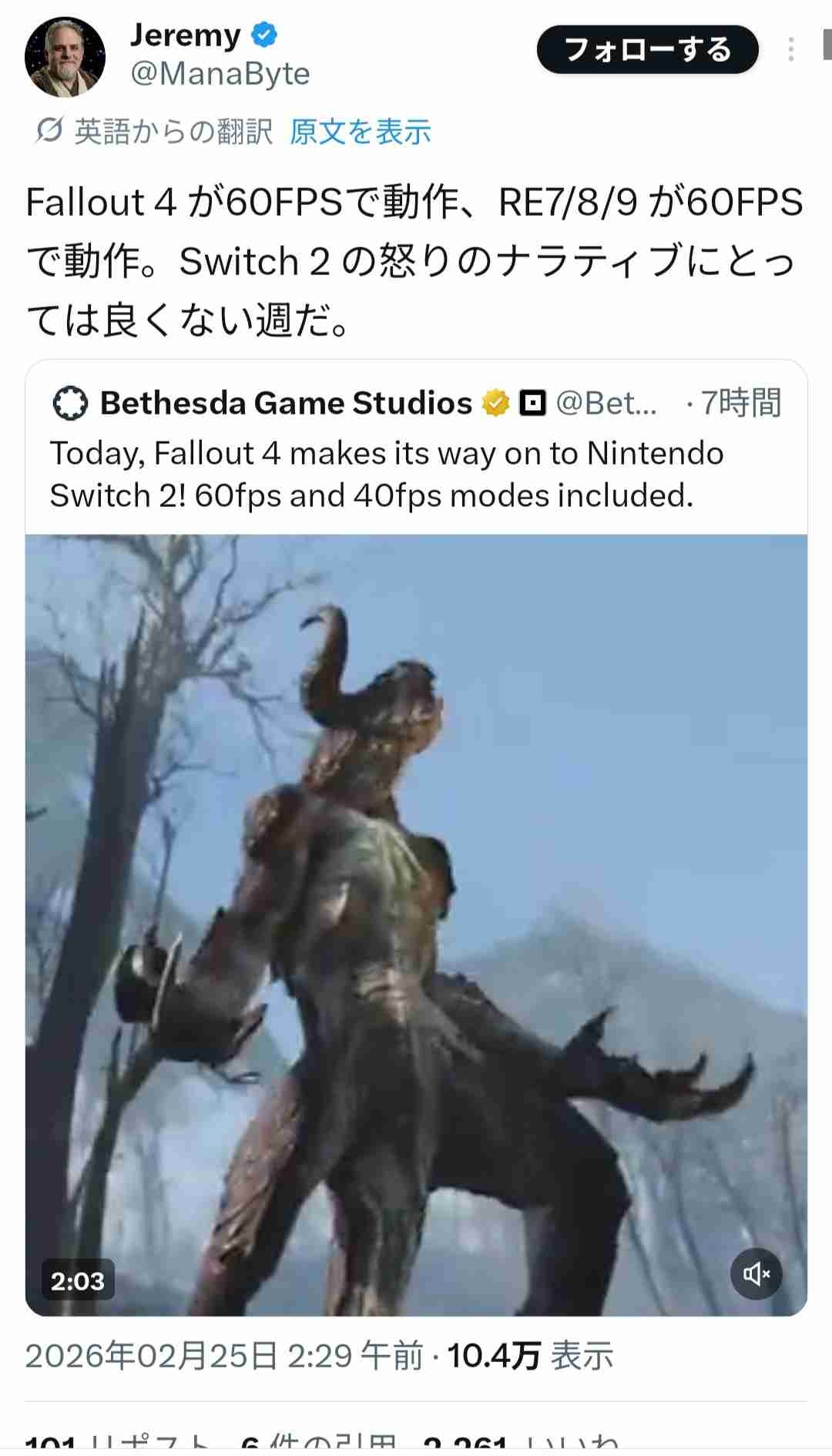 外人「Switch2でバイオが60fpsで動くだけでアンチが発狂して草😁」→バズりまくる