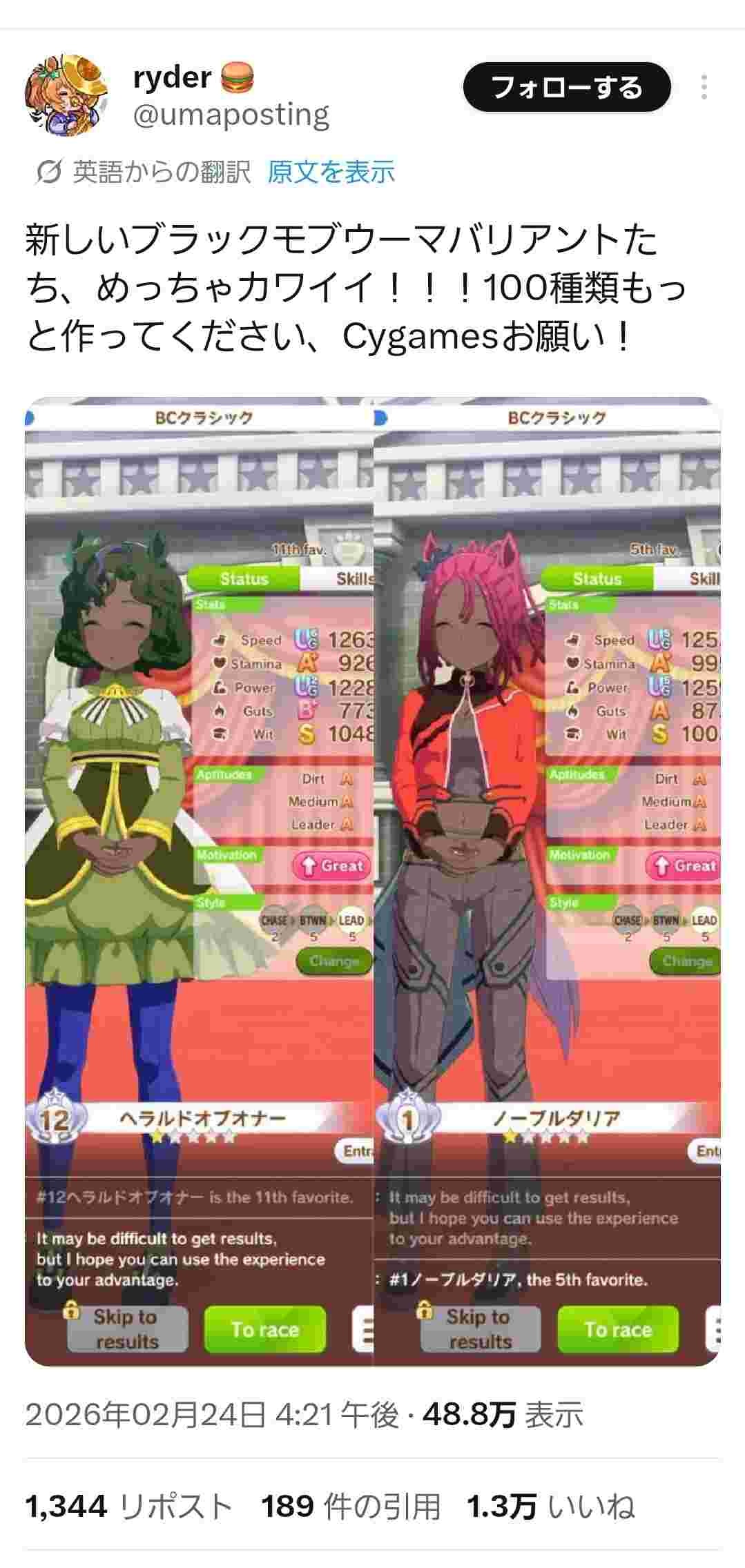 日本のウマ娘はほぼ日本人やし逆にパート1国なら南アフリカのウマ娘は8割黒人になるやろ - 15 : 2026/02/26(木) 09:00:57.367 ID:RNogzXzna