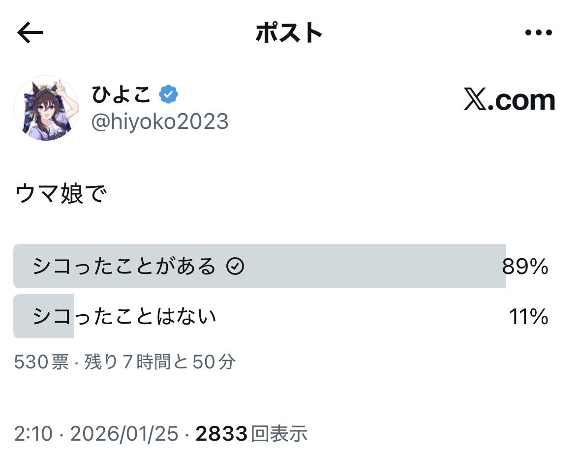 じゃあキミはウマシコしたことないのか? - 61 : 2026/02/26(木) 10:18:36.602 ID:xVjcbjvQP
