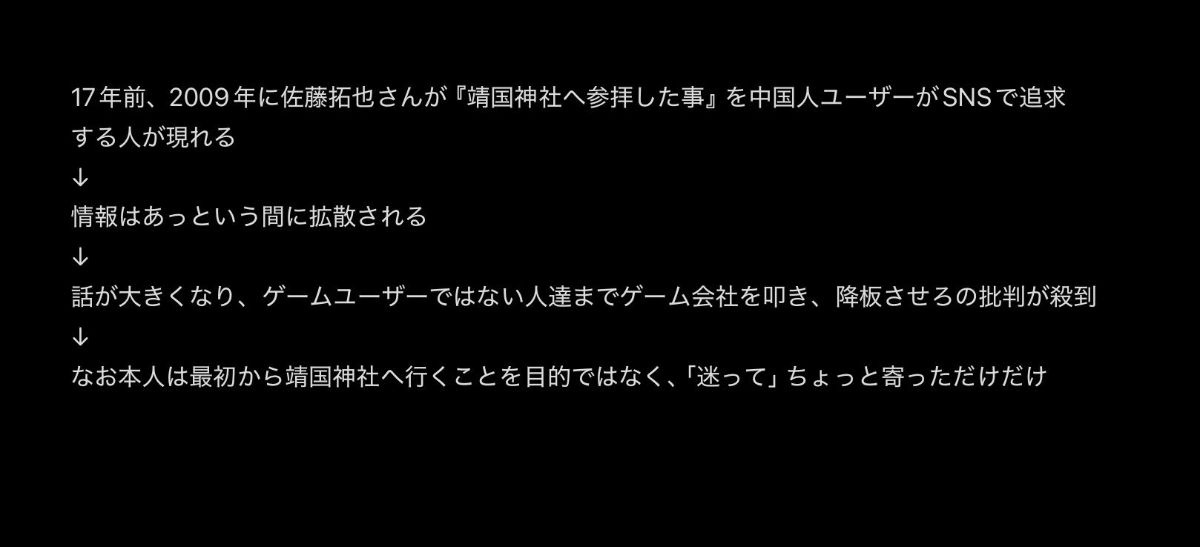 - 靖国行ったブログの記事掘られて向こうで話題になってる以上降ろさないとユーザーから叩かれるのは会社だからな
