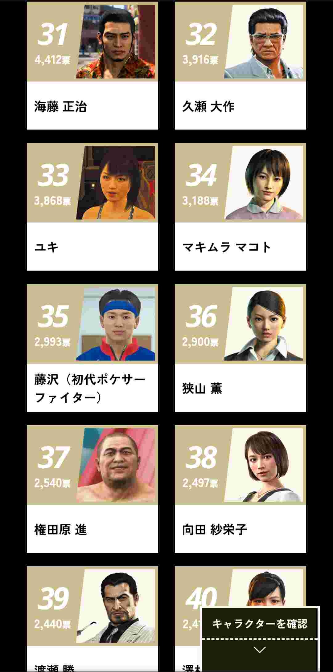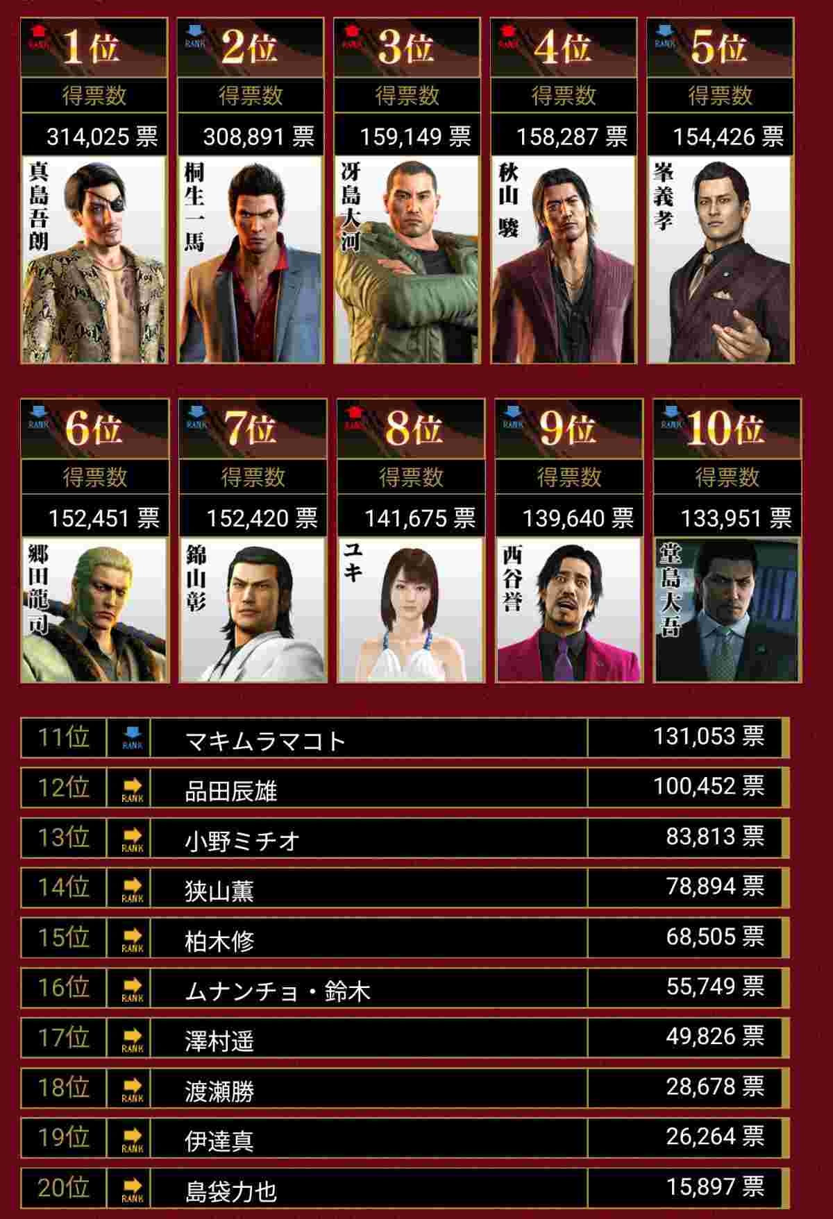 龍が如くの人気投票、とんでもない事になるwww