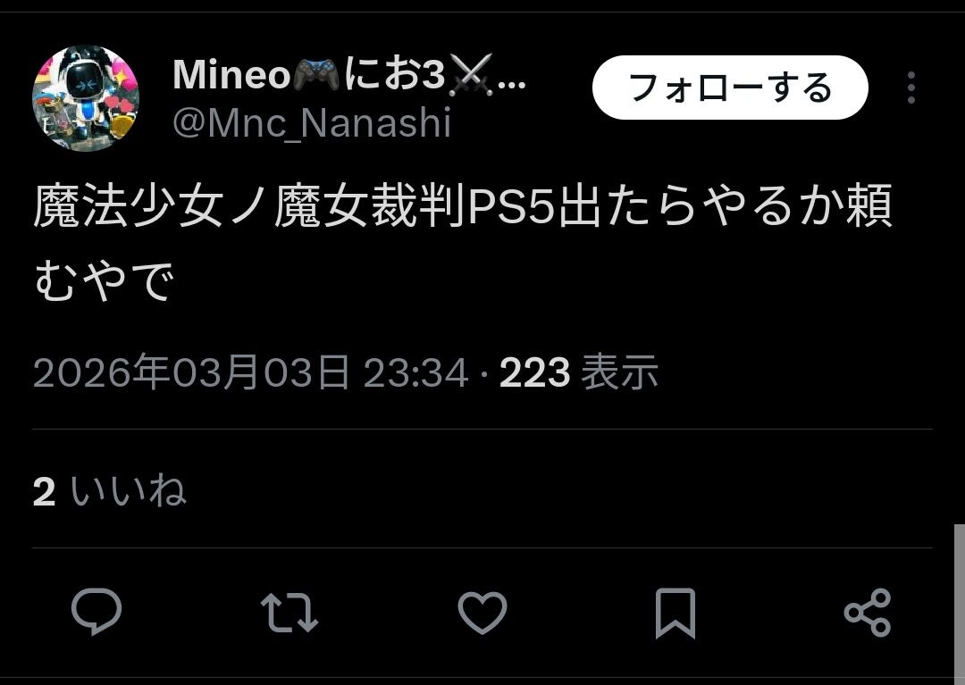 魔法少女ノ魔女裁判、PS5で出すべきとSNSで言われまくってしまう♥