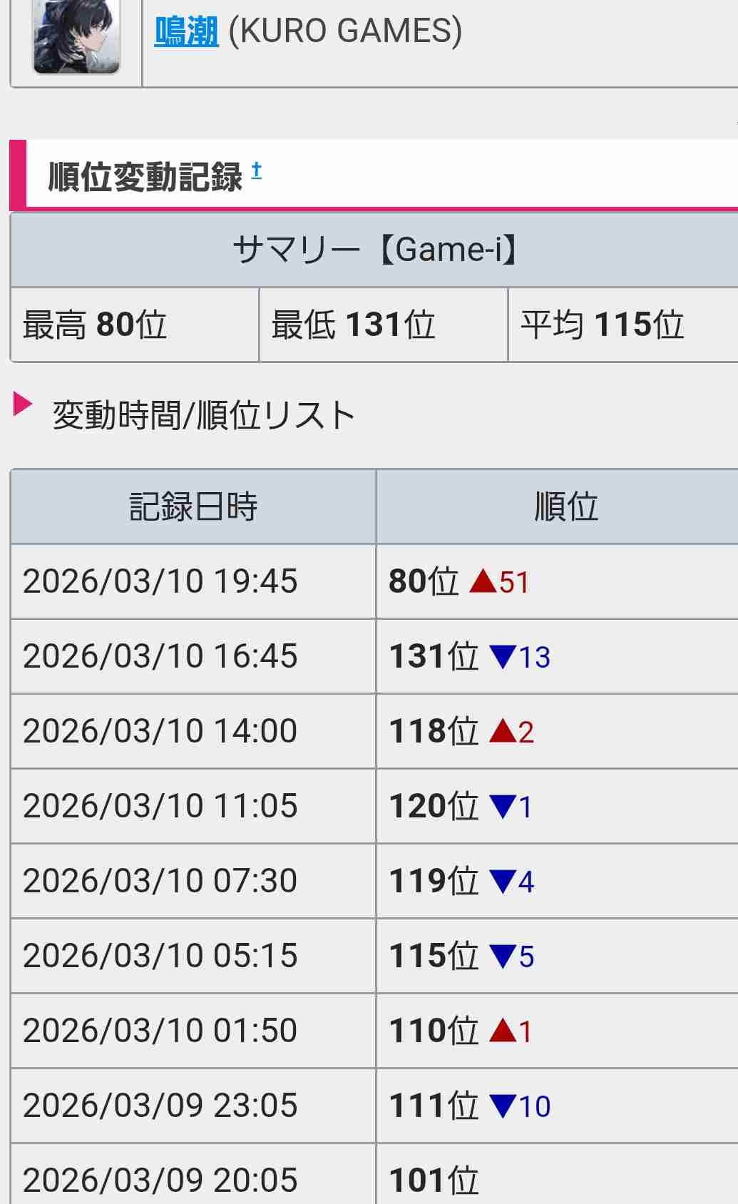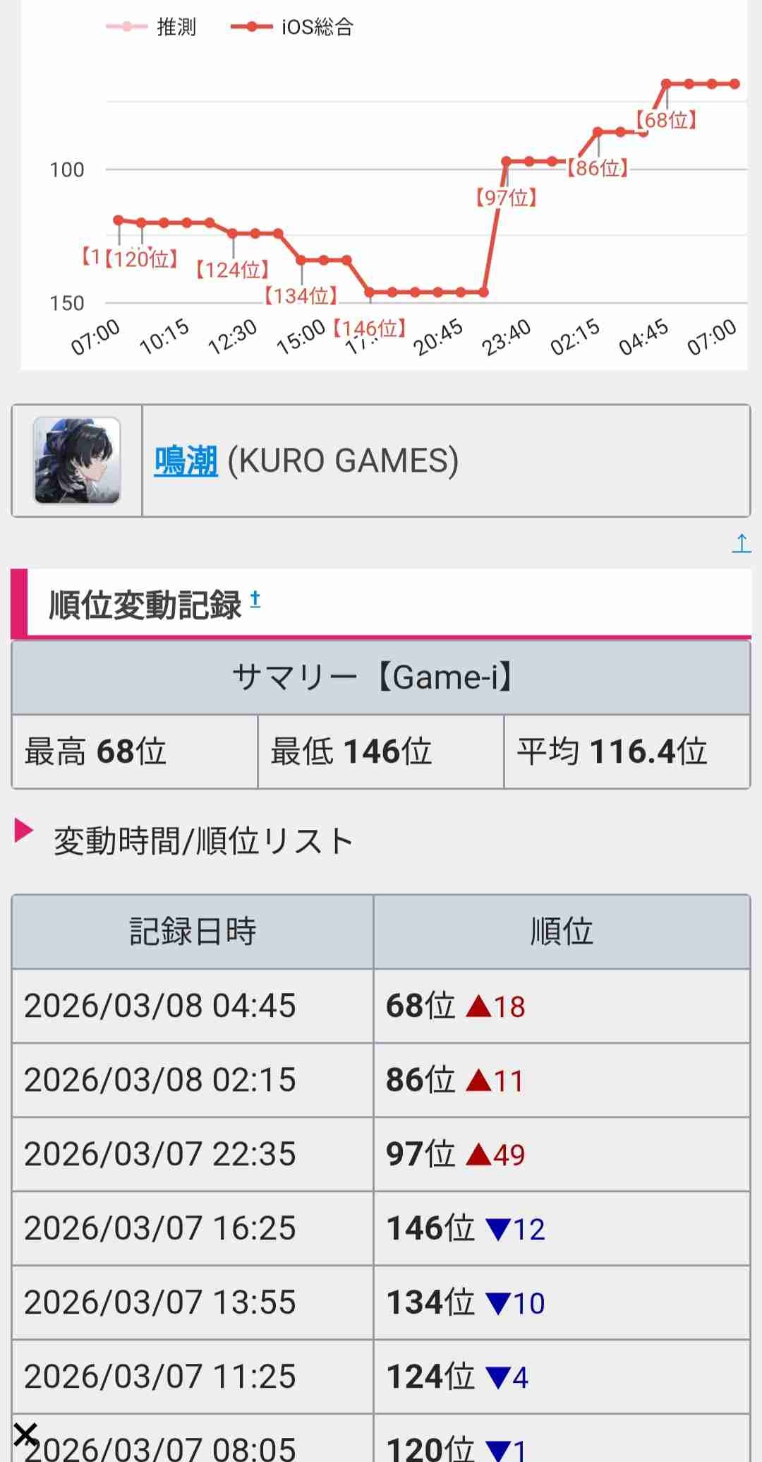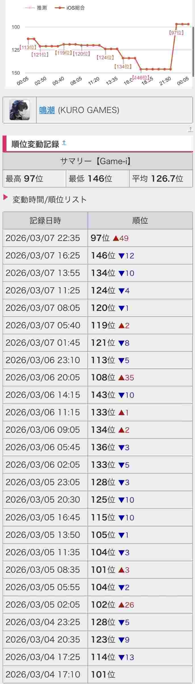 鳴潮さんまたまた自社買いでセルラン大ジャンプをしてしまうwww