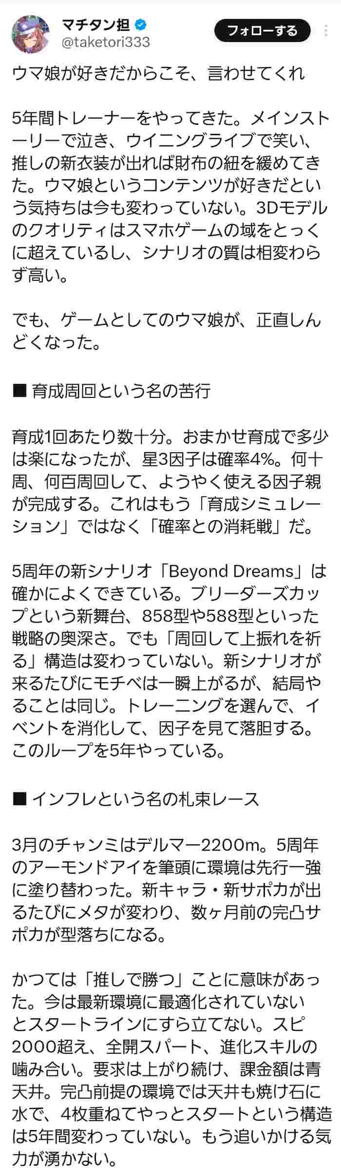 ウマ娘プレイヤー、本音をぶちまけてしまう