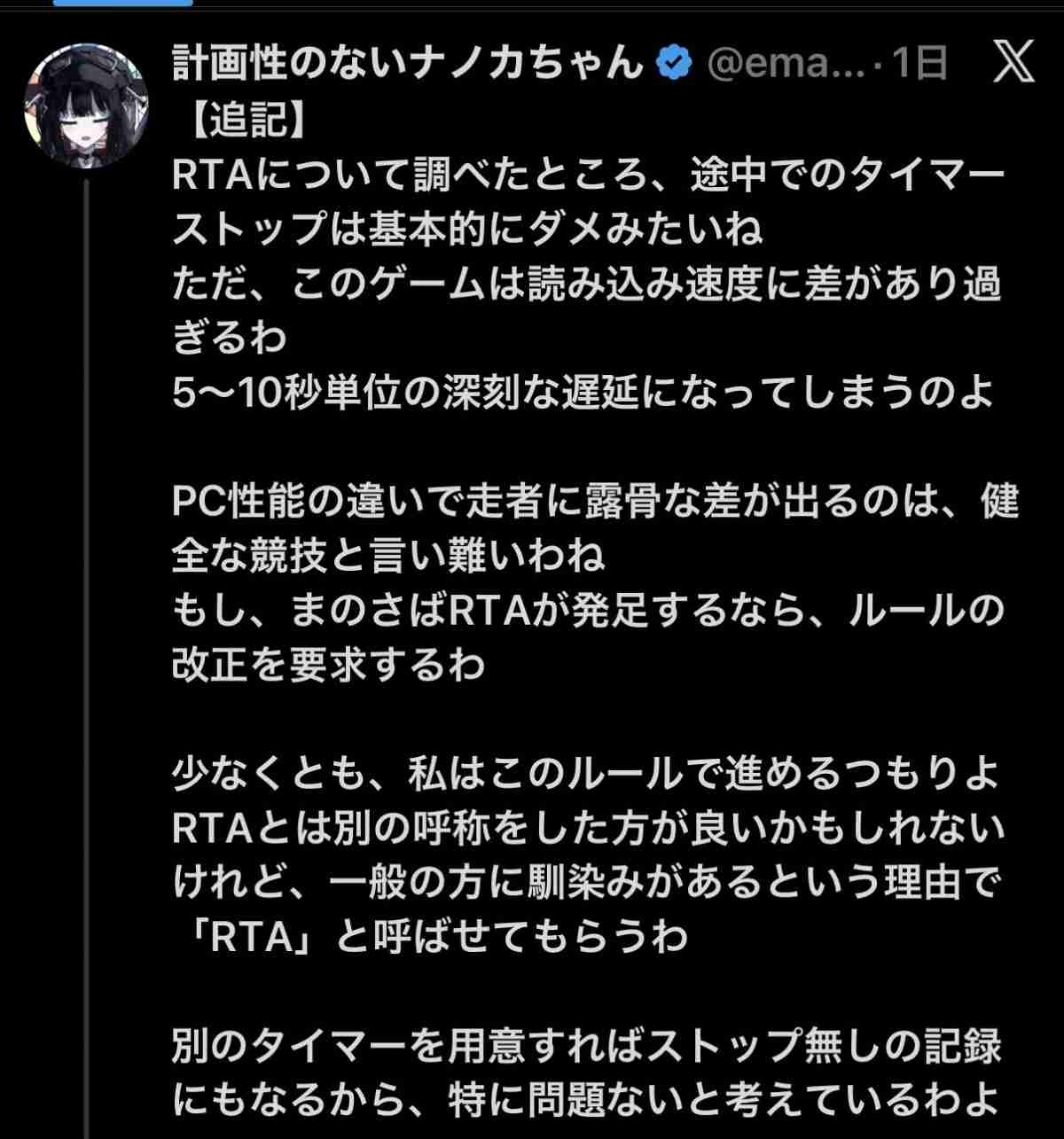 - RTAからリアル要素なくしたらRTAじゃないじゃん