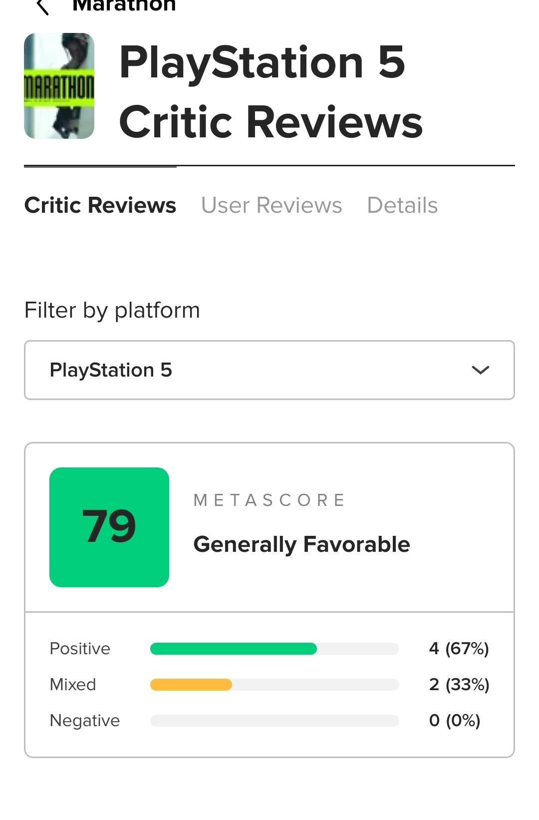 PS5版マラソンのメタスコア79点!あの紅の砂漠を上回る!!!
