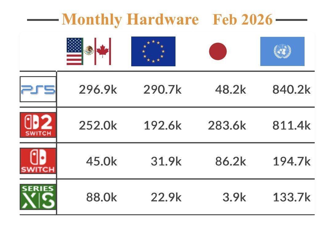 2月全世界1位はPS5でSwitch2は敗北www北米はPS5が取り欧州はSwitch2惨敗www