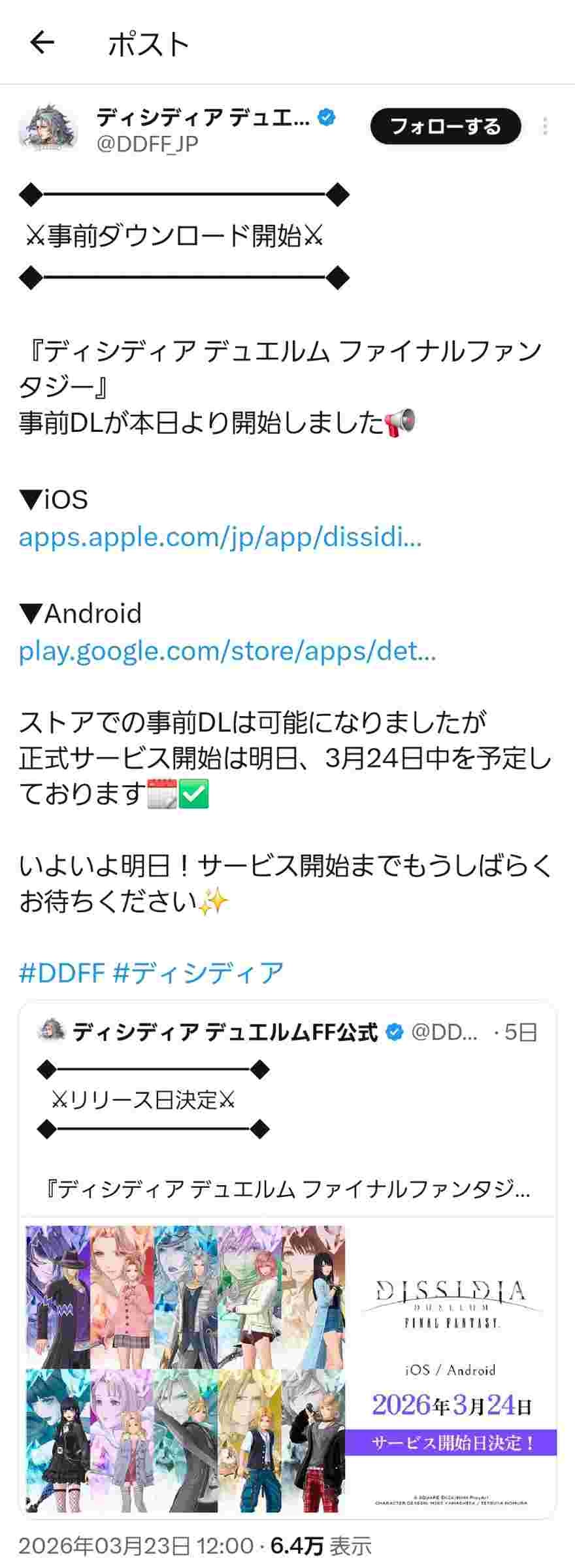 FFの新作ソシャゲ、明日リリースwww