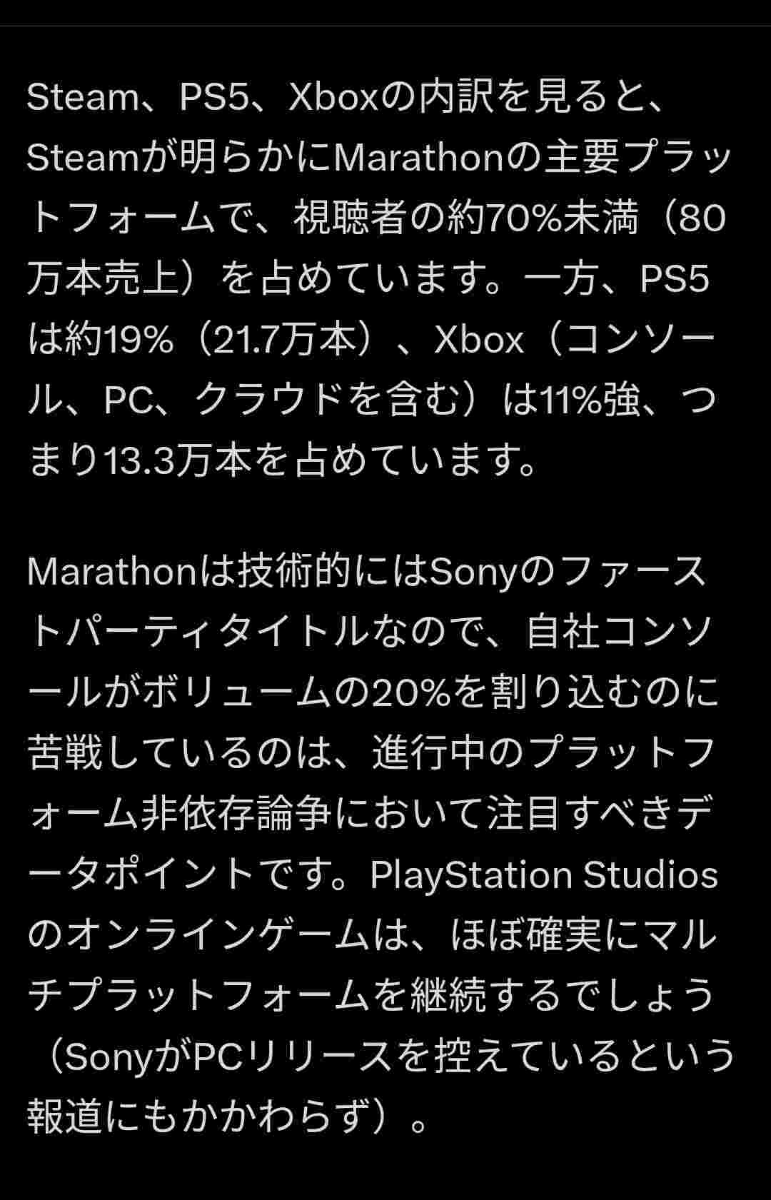 ソニーのマラソンの売上、Steamが70%、PS5は19%で障壁扱いされる😭