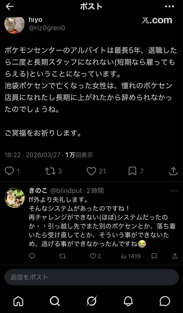 ポケモンセンター、一度バイトを退職すると2度と長期で雇ってもらえないシステムだった