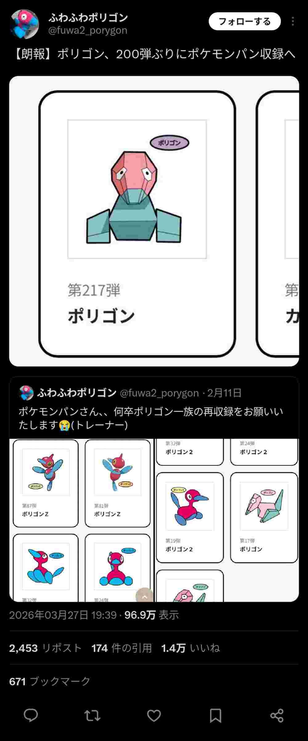 ポリゴン、ポケモンパンに実に200弾ぶり(18年ぶり)に収録