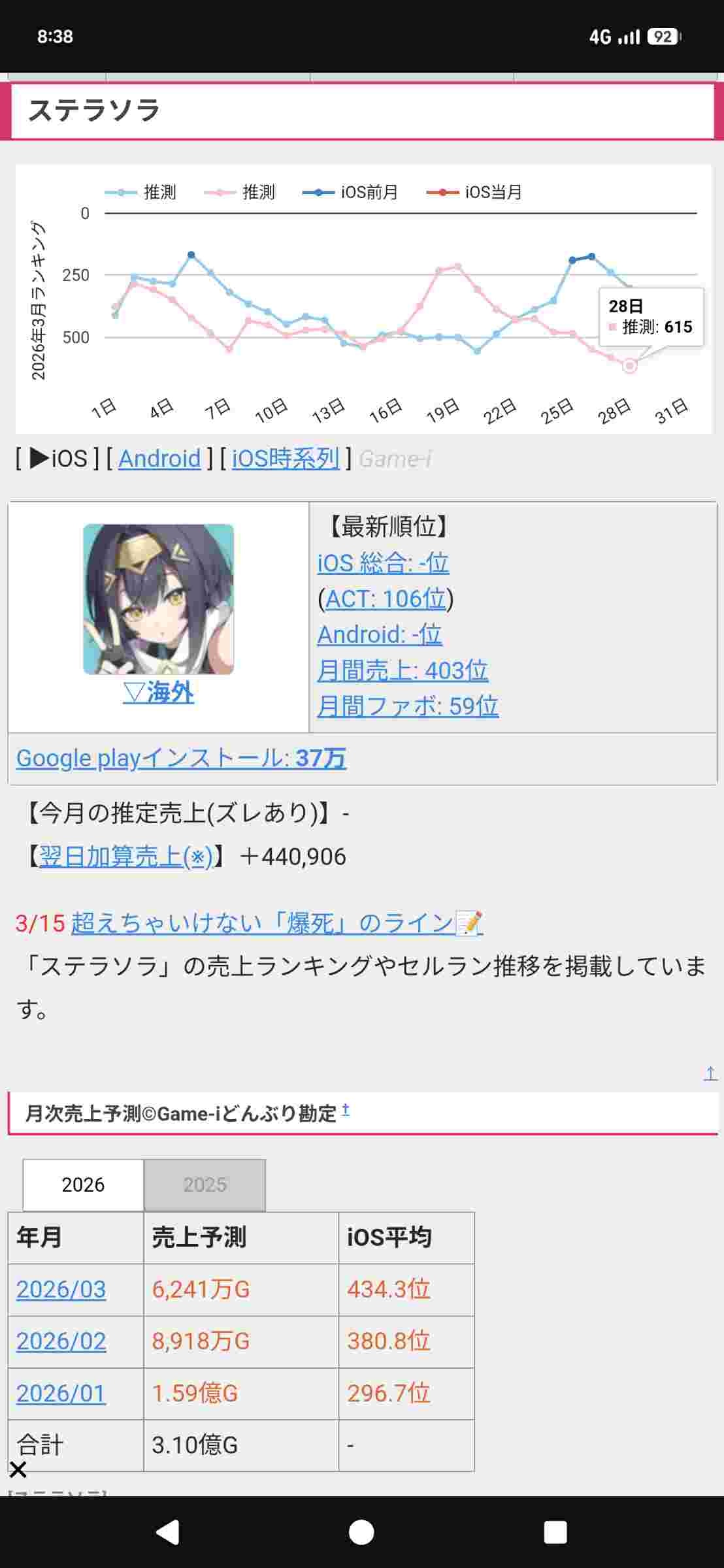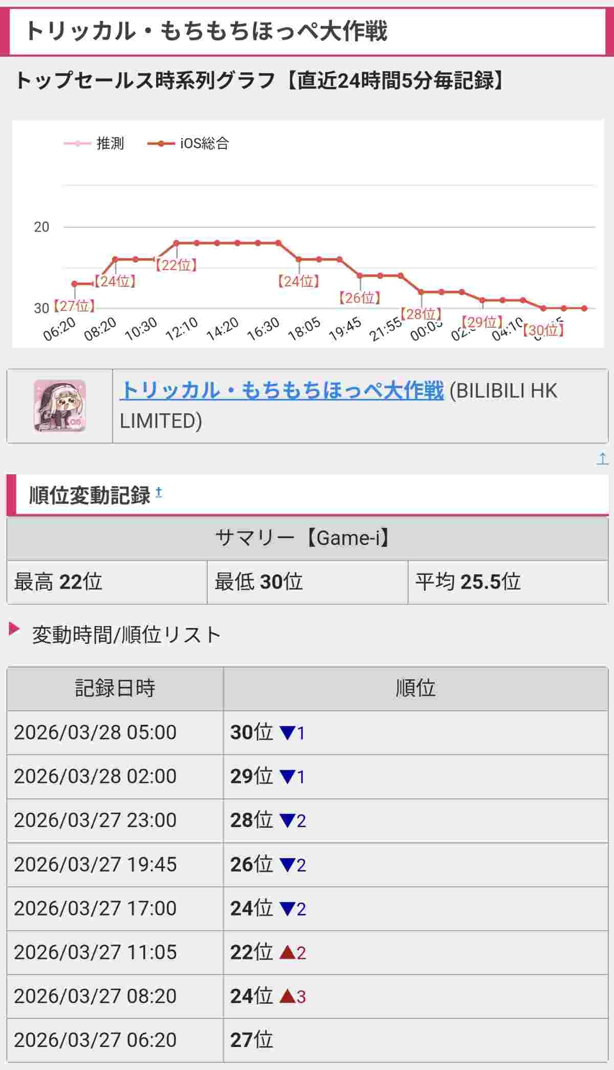 Yostarの新作ソシャゲ、セルランがとうとう600位を下回るwww