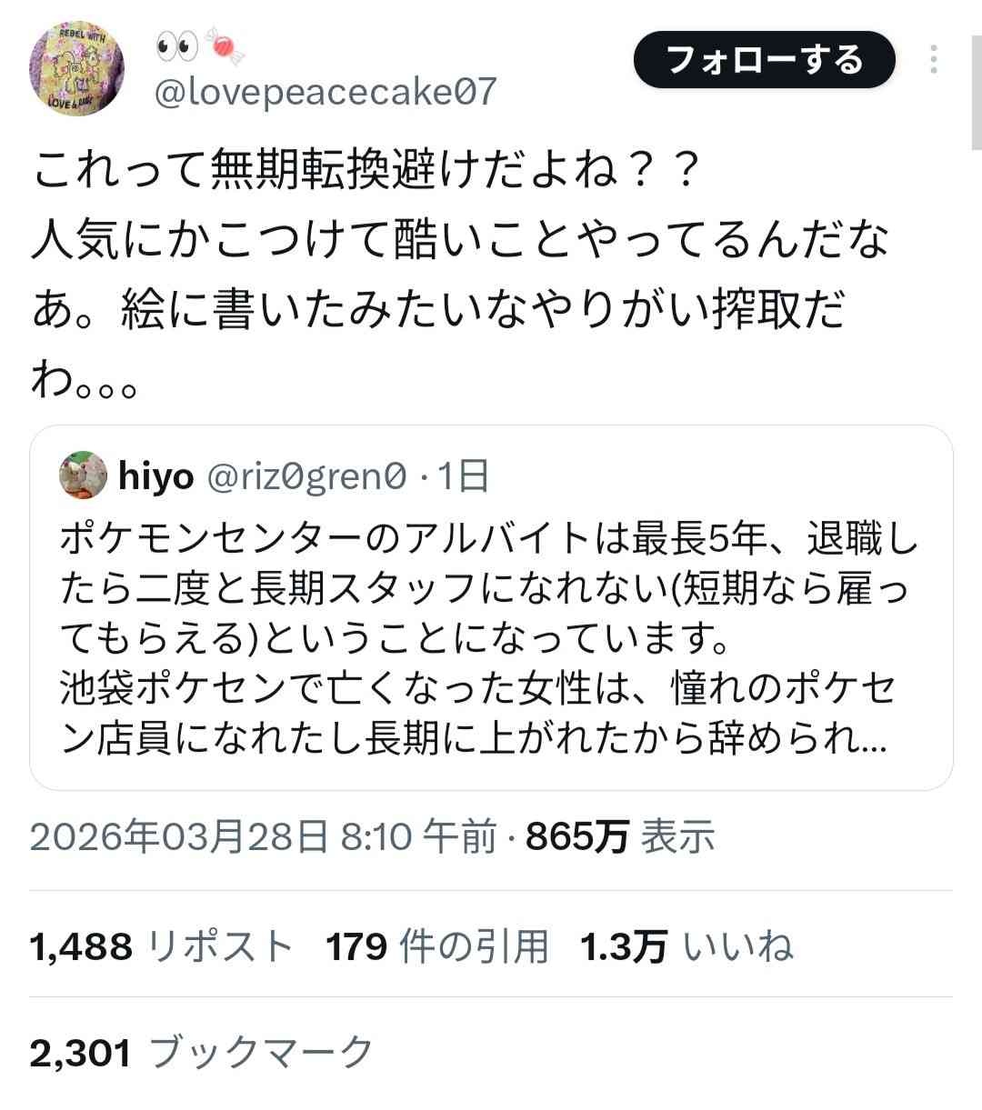 ポケセン事件、無期転換避けに飛び火して荒れる…