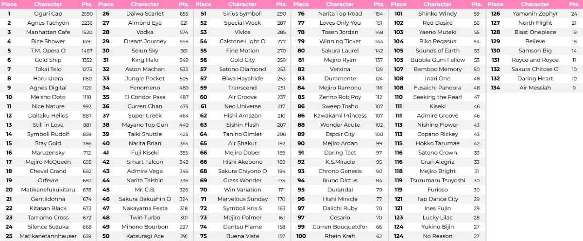 - 日本の弱男から人気あるウマ娘が軒並み下位