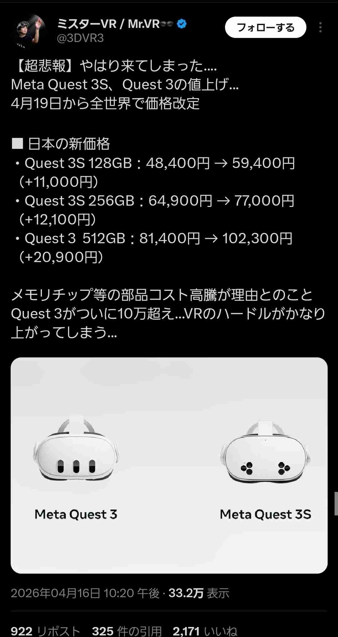 meta quest 3だけどもう売ってない - 45 : 2026/04/17(金) 09:24:33.448 ID:ou6jbst0l