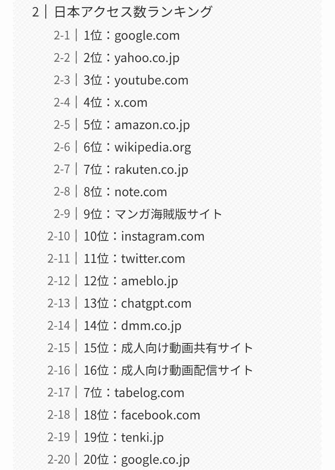 - 国内サイトアクセス数ランキングでも9位に海賊版サイト