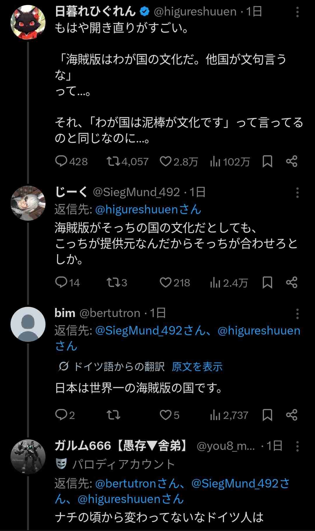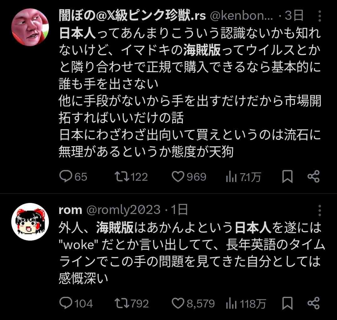 - 自動翻訳が便利になった結果ここ数日Twitterで海賊版論争がなされている模様
