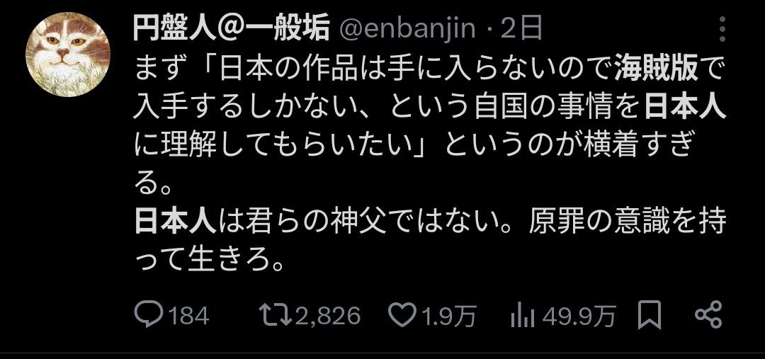 - そもそも漫画村の国で海賊版への正義を語るなよ
