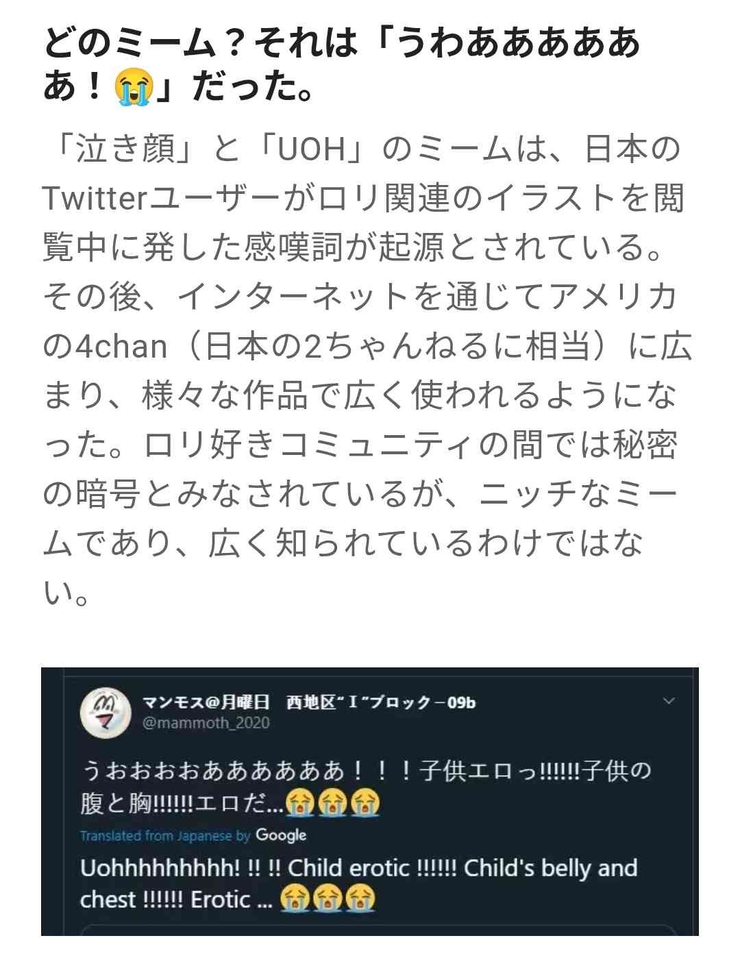 - 海外では泣き顔はペドフィリアの象徴として使われてるからアカンらしい