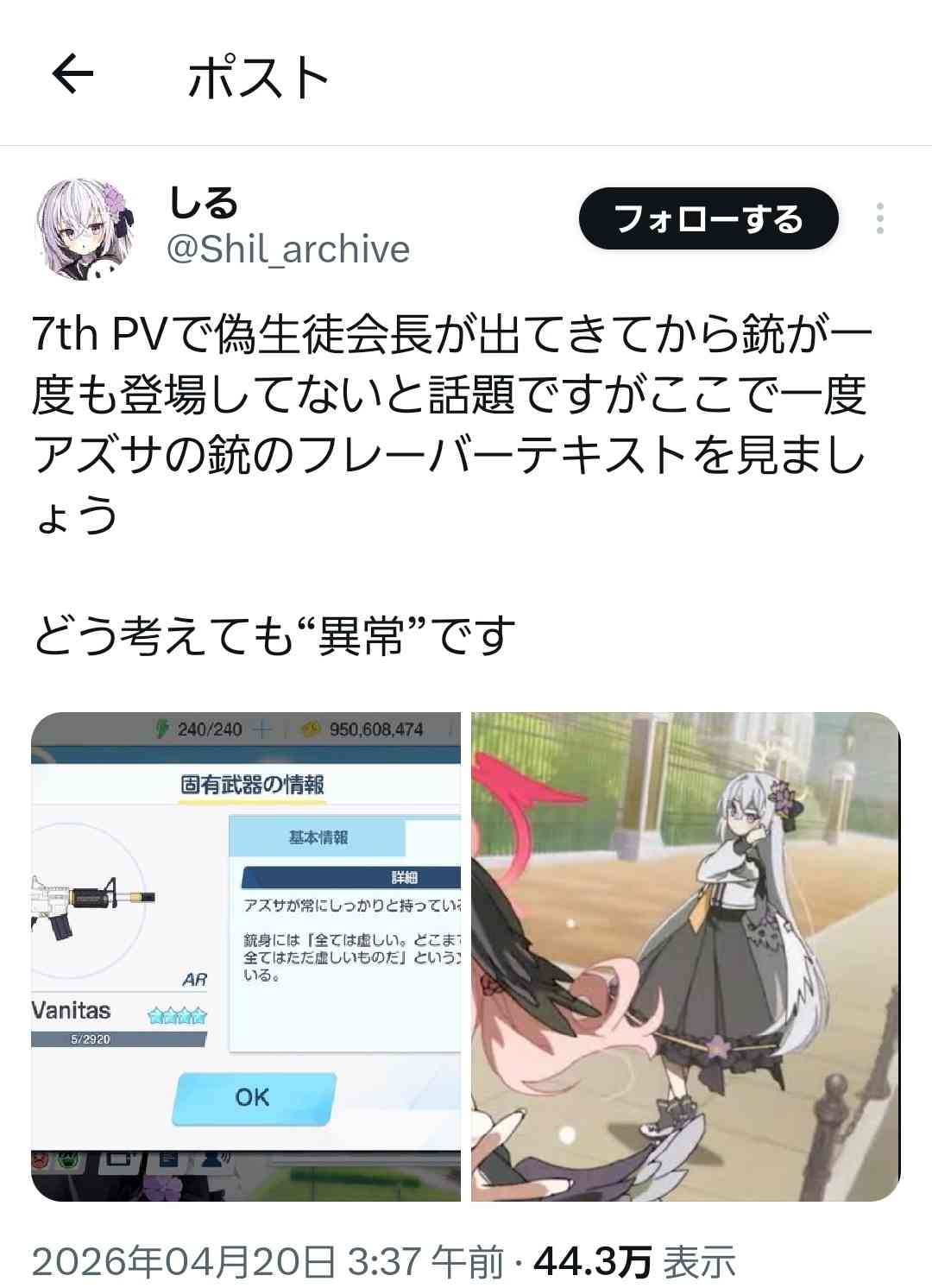- ブルアカに限った話じゃないけど中韓のソシャゲのシナリオってとりあえず専門用語並べ立てて意味深でそれっぽい雰囲気出してるだけだからその辺に限界を感じるわ