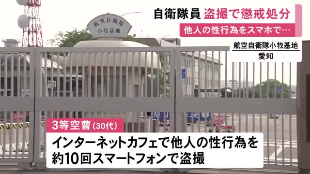 航空自衛隊小牧基地によりますと、サイバー運用隊に所属する30代の3等空曹は、おととし1月から2月にかけ、およそ10回にわたってインターネットカフェで他人の性行為をスマートフォンで盗撮したということです。