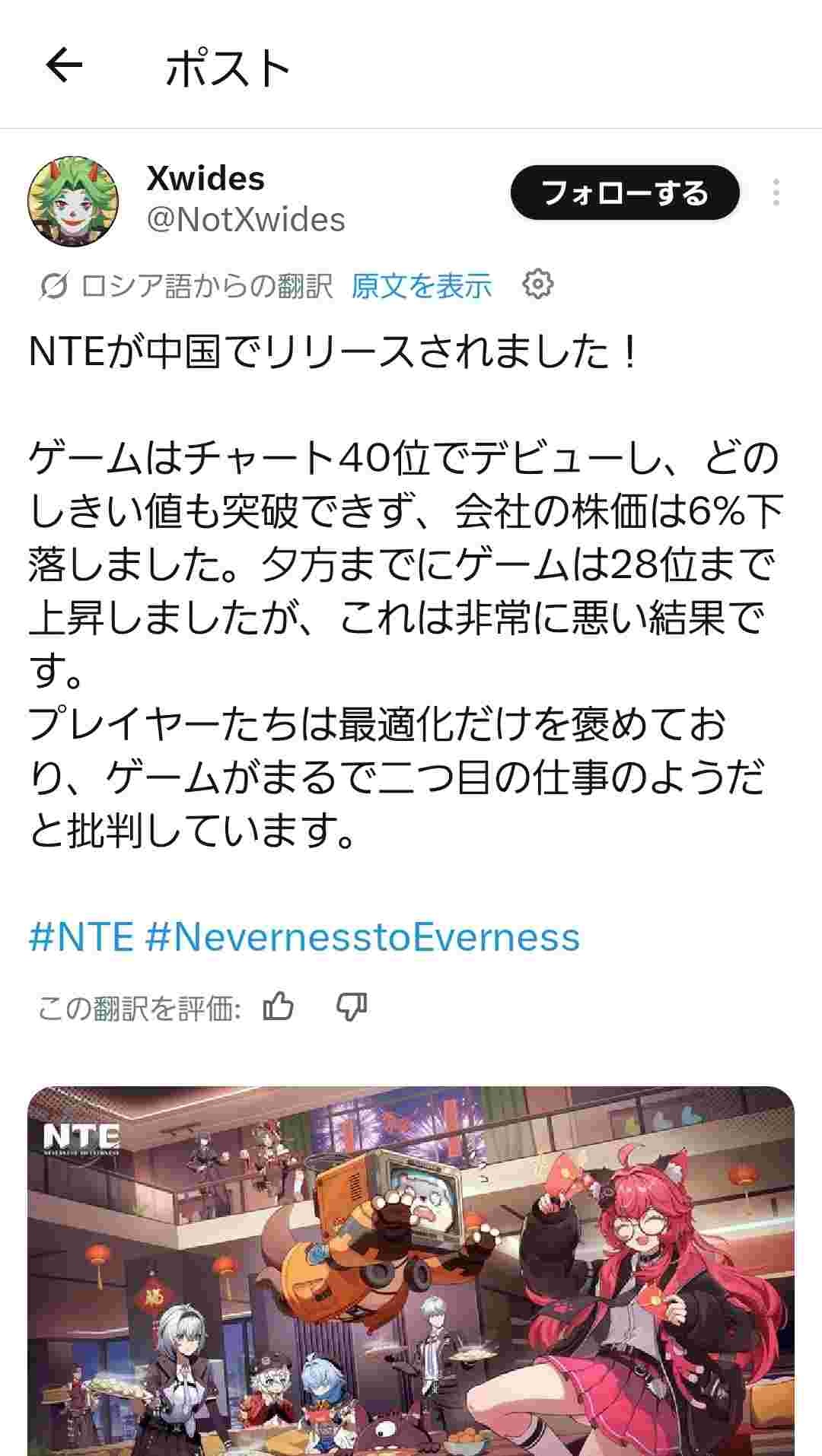 新作ソシャゲ「NTE」本国で大コケ、ゲーム体験が仕事のようだと評される