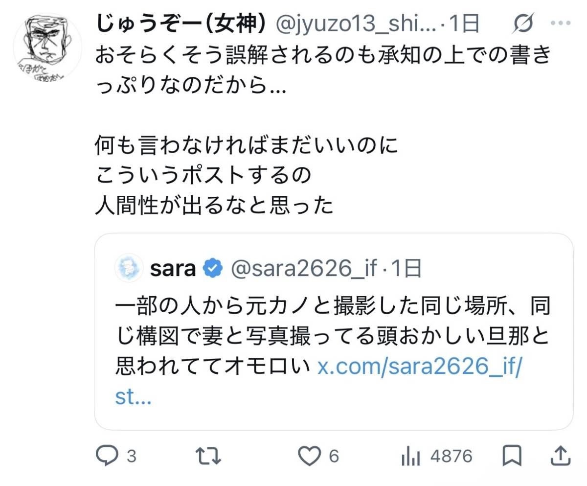 - 分かりにくいのはそうやが元カノ確定ではないのは間違いないんやからその状態で叩くのがアホすぎる