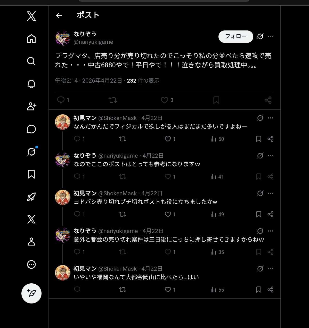 小売「プラグマタが人気で店の在庫が完売したので、私の分を出したらスグ売れた。これが現場の声です」