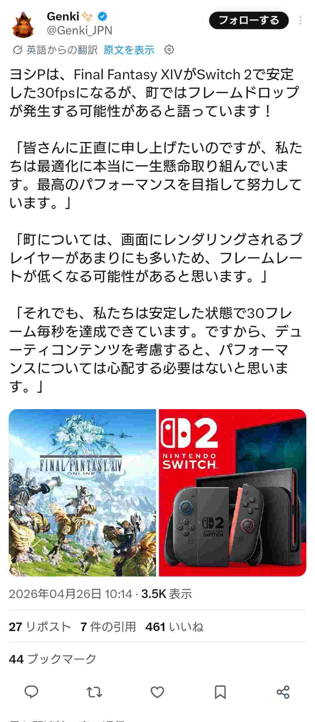 https://mynintendonews.com/2026/04/25/yoshi-p-final-fantasy-xiv-on-switch-2-has-some-framerate-issues-but-you-dont-have-to-be-concerned/