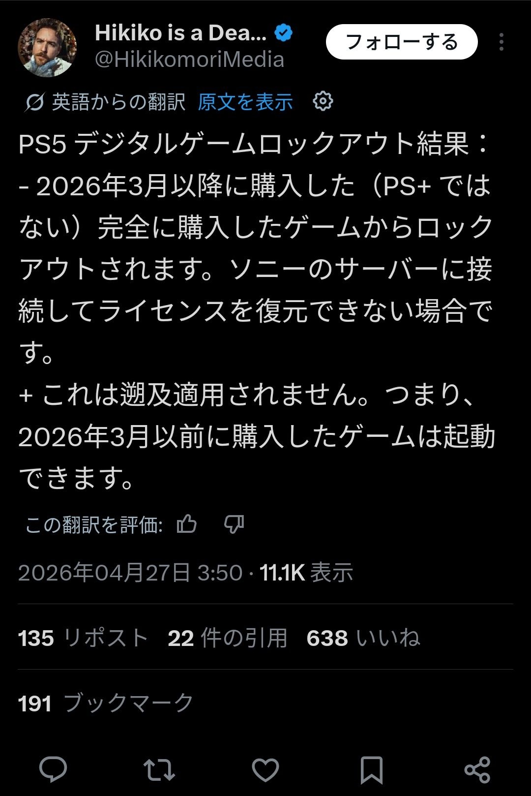 PS5のDLゲームが30日で起動できなくなる規制、マジっぽいwww