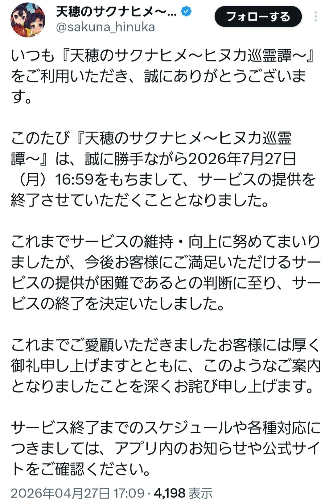 - サービス開始して3ヶ月以内にサ終告知って判断が早すぎるだろう
