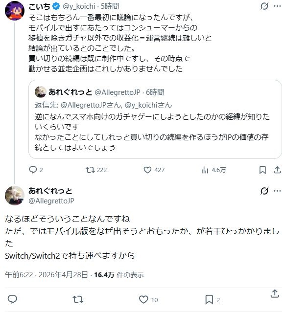 サ終織り込み済みとか売り逃げ上等みたいでイメージ悪くなるで - 49 : 2026/04/28(火) 15:01:26.085 ID:VGmGH5Pvw