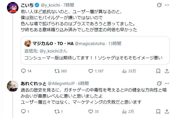 - 愚痴りたいのはわかるけどガチャゲーにしたのは自分らの判断が主やろ