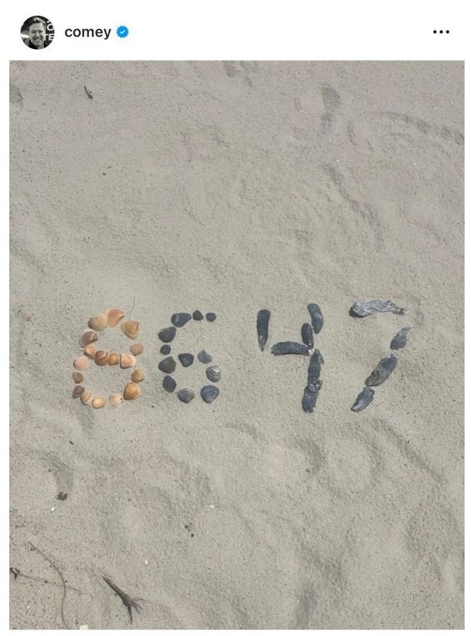 問題とされたのはコミー元長官がインスタグラムに投稿した写真で(その後削除)、貝殻を並べて「86 47」の文字を描いていた。