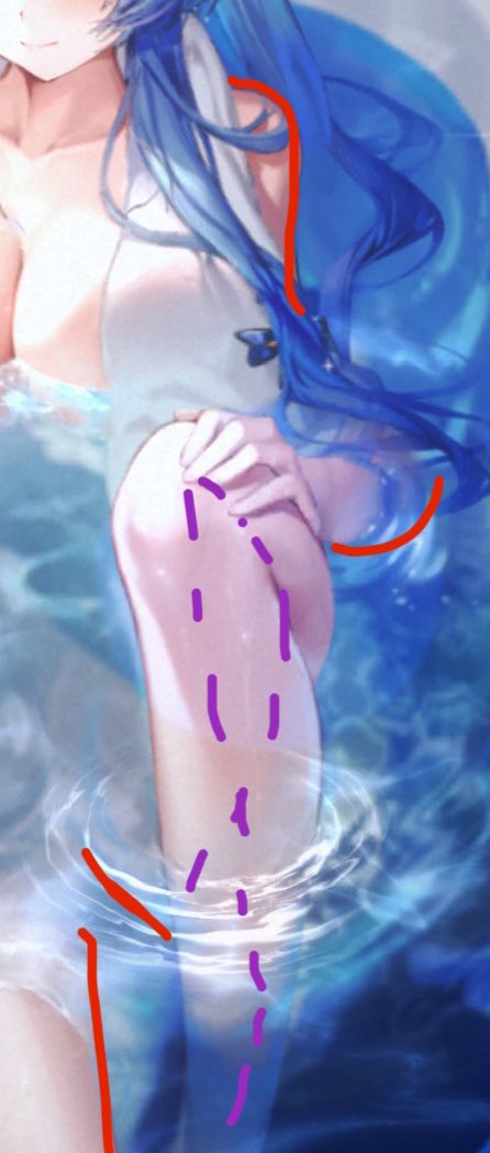 左足が変な位置から水面に出てるのは水の屈折でこう見えてるとかないんか?