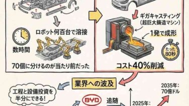 エッヂ イーロン「車のパーツって分けて作る必要ある?」一体型の鋳造にしてコスト40%削減