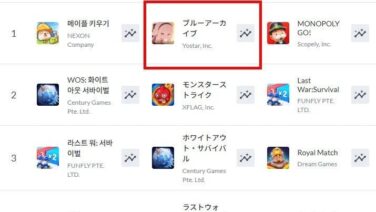 エッヂ ブルアカ、5周年アプデでセルラン3位(12:40)