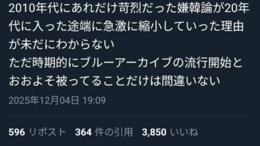 エッヂ 「嫌韓」が廃れた理由、「ブルアカ」だった事が発覚www→3.8万いいね