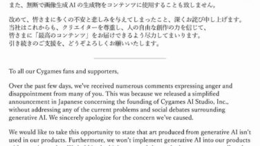 ゲハ 【AI問題】サイゲがAIスタジオ設立で世界炎上してる件、サイゲが日本語/英語で声明文を発表する事態に