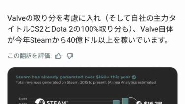 エッヂ Steam運営会社Valve、今年度売上が既に162億ドル(2兆5400億円)を超え、ウィンターセール前に前年超えwww